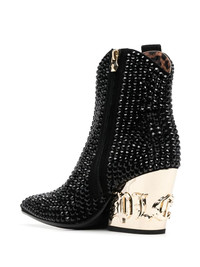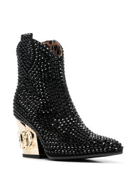 Gothic Plein 80mm leather boots black/gold-tone calf leather rhinestone embellishment embossed logo to the rear pointed toe side zip fastening Cuban heel Made in Italy Composition Outer: Calf Leather 100%, glass 100% Lining: Calf Leather 100% Sole: Calf Leather 100%, Rubber 100% SIZE & FIT Measurement CIRCUMFERENCE 9.44 in(24 cm) HEEL 3.14 in(8 cm) HEIGHT 5.9 in(15 cm)