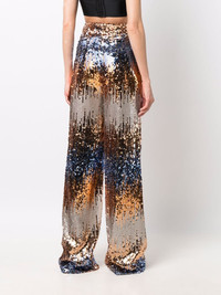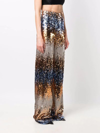 Gothic Plein sequinned trousers Highlights - Blue/gold - Two-tone design - Metallic sheen - Sequin embellishment - Wide leg Made in Italy Composition Fabric 100%, Sequin 100% SIZE & FIT Model measurements Height 5 ft 9 in(1.76 m) Bust/Chest 33.07 in(84 cm) Hips 34.64 in(88 cm) Waist 25.59 in(65 cm) FittingInformation This piece fits true to size. We recommend you get your regular size Designed to be fitted at the waist and hips, loose over the leg Made with a mid-weight stretch fabric Washing instructions Dry Clean Only