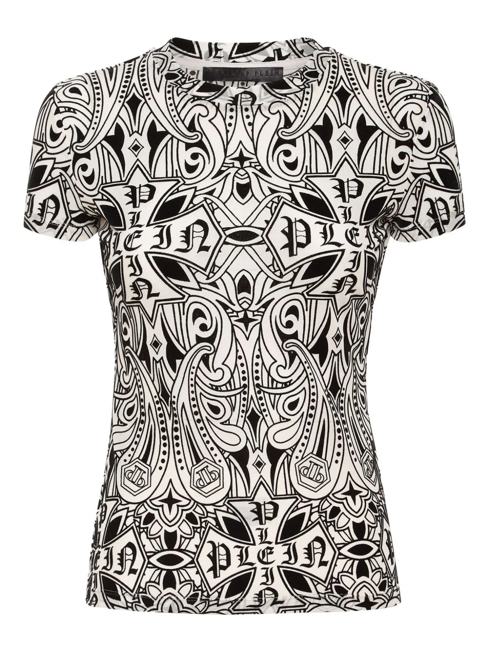 Gothic Plein T-shirt Highlights - Black and white - Intricate swirls and patterns - Crew neckline - Short sleeves - Logo detailing Imported Composition Fabric 100% Washing instructions Read Manufacturer Guidelines