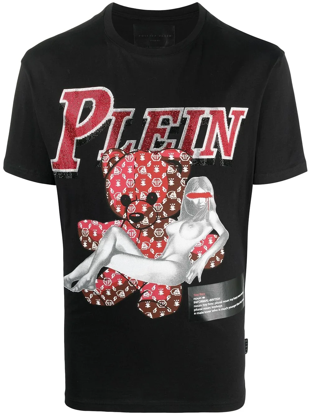 graphic-print cotton T-shirt black/multicoloured cotton rhinestone embellishment round neck short sleeves straight hem When buying this unisex item, keep in mind that it is graded in standard men's sizing. Imported Composition Cotton 100%, glass 100% Washing instructions Machine Wash