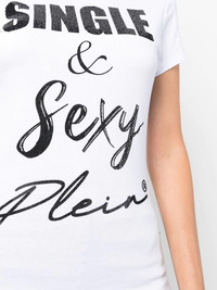 graphic-print cotton T-shirt white/black cotton jersey knit graphic print to the front crystal embellishment logo patch to the rear round neck short sleeves straight hem Imported Composition Cotton 100% SIZE & FIT Model measurements Height 5 ft 9 in(1.75 m) Bust/Chest 32.67 in(83 cm) Hips 36.22 in(92 cm) Waist 24.8 in(63 cm) FittingInformation This piece fits true to size. We recommend you get your regular size Cut for a close fit Made with a mid-weight fabric Washing instructions Hand Wash