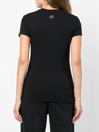 graphic-print cotton T-shirt Highlights - Black - Cotton - Jersey knit - Graphic print to the front - Crystal embellishment - Logo patch to the rear - Round neck - Short sleeves - Straight hem Imported Composition Cotton 100% SIZE & FIT Model measurements Height 5 ft 9 in(1.75 m) Bust/Chest 32.67 in(83 cm) Hips 36.22 in(92 cm) Waist 24.8 in(63 cm) FittingInformation This piece fits true to size. We recommend you get your regular size Cut for a close fit Made with a mid-weight fabric Washing instructions Hand Wash