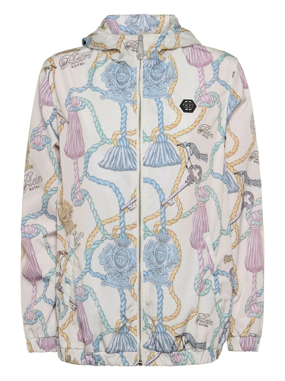graphic-print jacket Highlights - White - All over graphic print - Zip fastening - Hooded neckline Imported Composition Lining: Polyester 100% Outer: Polyester 100% Washing instructions Read Manufacturer Guidelines