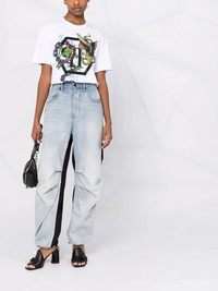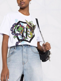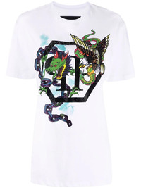 graphic-print short-sleeve T-shirt Known for a 'more is more' approach, this short-sleeve T-shirt from Philipp Plein features an eye-catching graphic print at the front. Layered over the brand's logo, both elements are finished with crystal embellishment. Imported Composition Cotton 100% SIZE & FIT Model measurements Height 5 ft 10 in(1.77 m) Bust/Chest 31.1 in(79 cm) Hips 33.85 in(86 cm) Waist 24.01 in(61 cm) FittingInformation This piece fits true to size. We recommend you get your regular size Cut for a loose fit Made with a mid-weight fabric Washing instructions Hand Wash