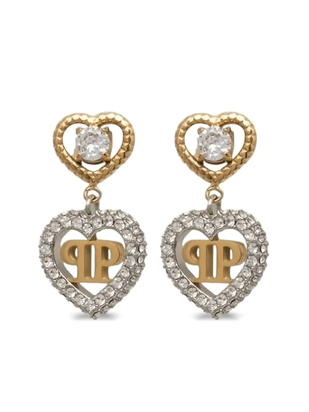 heart-charm drop earrings Highlights - Gold-tone - Crystal embellishment - Heart charm - Drop design - Logo plaque - Post-back fastening - These earrings come as a pair. Imported