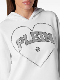 heart-motif rhinestone-embellished hoodie Highlights - White - Cotton blend - Jersey texture - Heart motif - Rhinestone embellishment - Logo embellishment - Silver-tone logo plaque - Classic hood - Drop shoulder - Long sleeves - Straight hem Imported Composition Cotton 88%, Polyester 12%