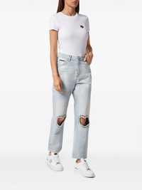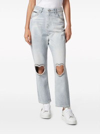 heart-patch straight jeans Highlights - Light blue - Cotton - Denim - Heart patch - Crystal embellishment - High-waisted - Belt loops - Front button and zip fastening - Straight leg - Classic five pockets - Straight hem - Ankle-length Imported Composition Cotton 100% Washing instructions Read Manufacturer Guidelines