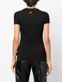 crystal-embellished logo T-shirt black/white cotton crystal embellishment logo print to the front logo patch to the rear round neck short sleeves straight hem Imported Composition glass 100%, Cotton 100% SIZE & FIT Model measurements Height 5 ft 11 in(1.8 m) Bust/Chest 31.49 in(80 cm) Hips 35.43 in(90 cm) Waist 24.4 in(62 cm) FittingInformation This piece fits true to size. We recommend you get your regular size Cut for a slim fit Made with a mid-weight fabric Washing instructions Hand Wash