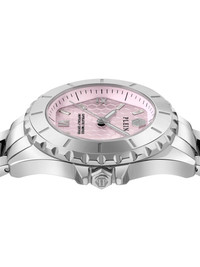 Heaven 38mm Highlights - 38mm - Light pink - Stainless steel - Round face - Guilloche dial - Geometric dial - Baton hands - Silver-tone logo plaque - Quartz movement - Rotating bezel - Screw-down crown - Adjustable link bracelet - Folding clasp - This item comes with a standard one-year warranty from the boutique. Imported SIZE & FIT Measurement DIAMETER 1.49 in(3.8 cm)