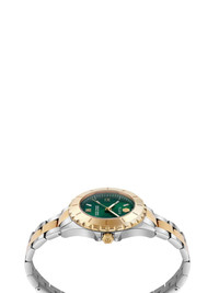 Heaven 38mm Highlights - Emerald green - Stainless steel - Two-tone bracelet - Gold-tone logo plaque - Baton dial - Quartz movement - Geometric dial - Round face - Screw-down crown - Engraved case back - Folding clasp - Applique detail Imported
