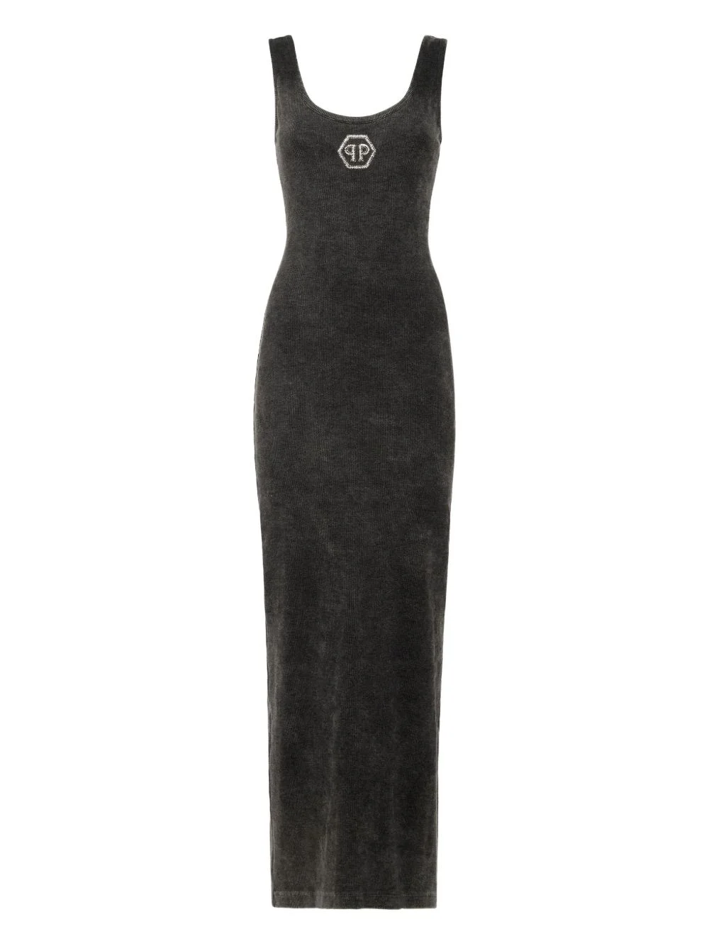 Hexagon ribbed-knit tank midi dress Highlights - Grey - Embroidered logo to the front - Scoop neck - Open back - Sleeveless Imported Composition Fabric 100% Washing instructions Read Manufacturer Guidelines