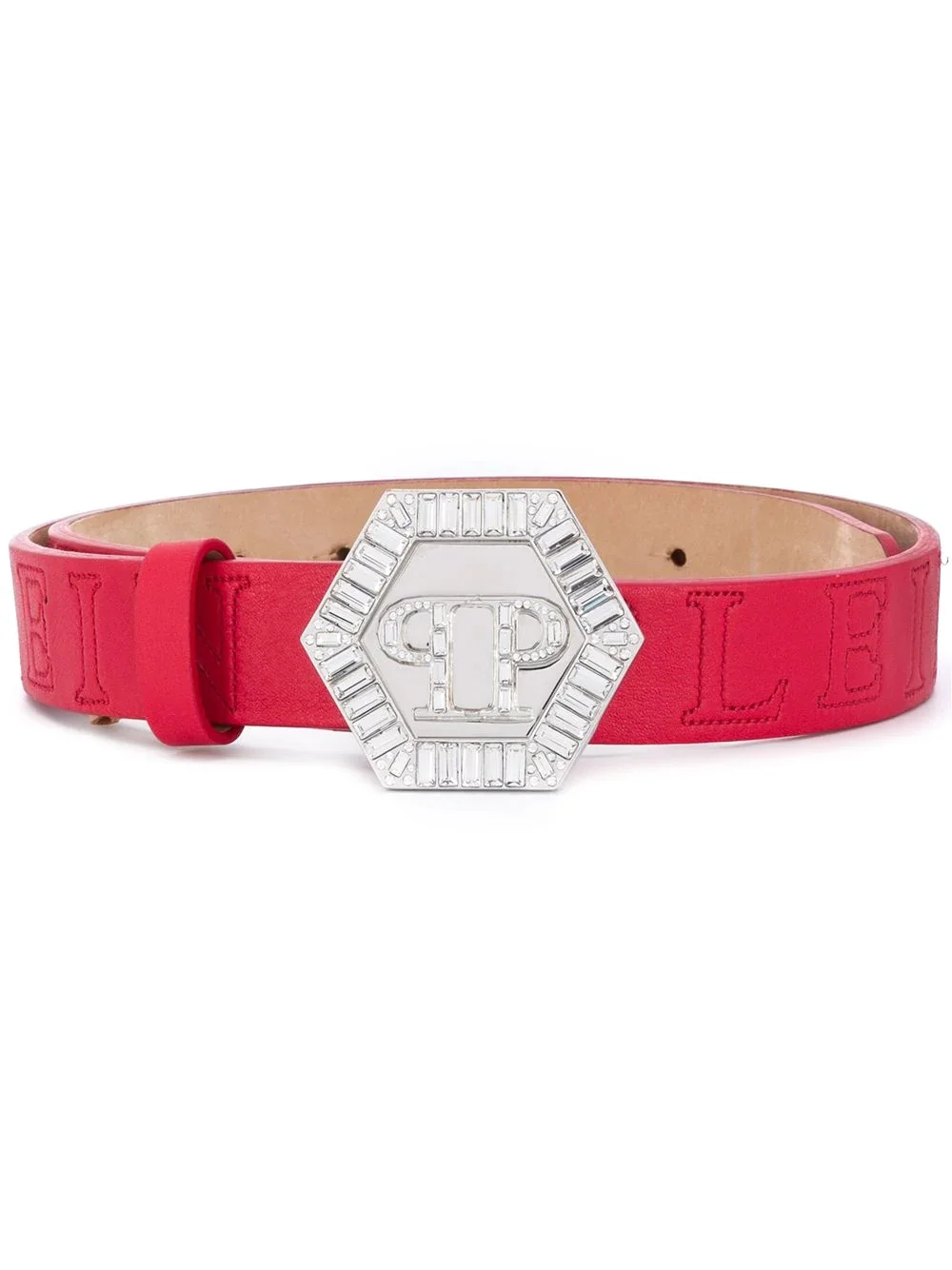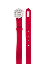 hexagonal logo plaque belt Highlights - Red - Calf leather-blend - Silver-tone logo plaque - Contrast stitching - Adjustable fit Made in Italy Composition Calf Leather 100%, Brass 100%, Sheepskin 100% SIZE & FIT Measurement Minimum Length 29.52 in(75 cm) TOTAL LENGTH 33.46 in(85 cm) WIDTH 1.18 in(3 cm)