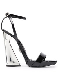 high-heel leather sandals black leather high-shine finish skull stud embellishment silver-tone hardware open toe buckle-fastening ankle strap high block heel branded leather insole Made in Italy Composition Lining: Calf Leather 100% Outer: Calf Leather 100% Sole: Calf Leather 100% SIZE & FIT Measurement HEEL 4.92 in(12.5 cm) Sole height 0.59 in(1.5 cm)