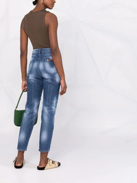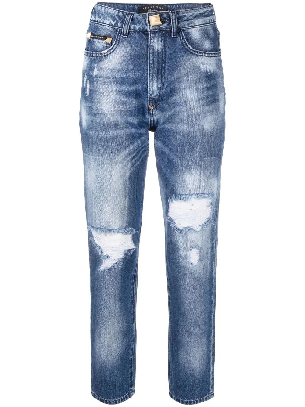 high-rise distressed cropped jeans Philipp Plein's jeans nod to the brand's rock n roll sensibility. This high-rise cropped pair is distressed, bleached and whiskered throughout. Imported Composition Lining: Polyester 65%, Cotton 35% Outer: Cotton 100% SIZE & FIT Model measurements Height 5 ft 10 in(1.77 m) Bust/Chest 29.92 in(76 cm) Hips 34.25 in(87 cm) Waist 23.62 in(60 cm) FittingInformation This piece fits true to size. We recommend you get your regular size Cut for a slim fit Made with a mid-weight non-stretch fabric Washing instructions Dry Clean Only