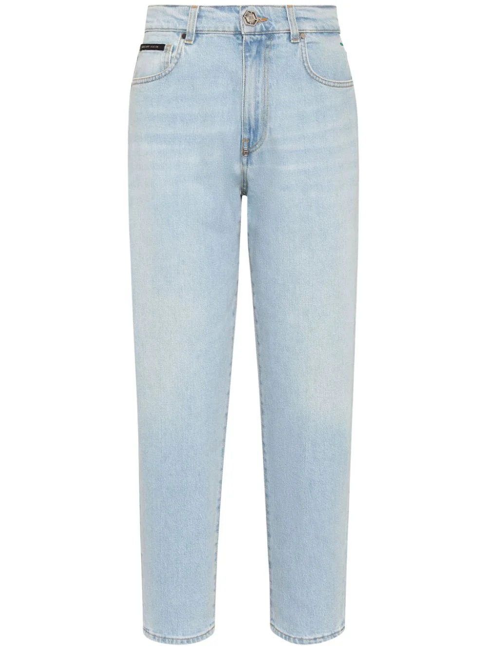 high-rise straight-leg jeans Highlights - Light blue - Stretch-cotton - Logo patch to the rear - Washed denim - High-rise - Front button and zip fastening - Classic five pockets - Straight leg Made in Italy Composition Outer: Cotton 99%, Elastane 1% Lining: Polyester 65%, Cotton 35%