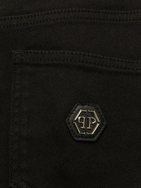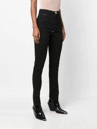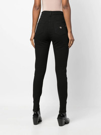high-rise super-skinny jeans black stretch-cotton dark wash logo plaque belt loops front button and zip fastening classic five pockets super-skinny cut Made in Italy Composition Outer: Cotton 97%, Spandex/Elastane 3% Lining: Cotton 100% SIZE & FIT Model measurements Height 5 ft 11 in(1.8 m) Bust/Chest 31.49 in(80 cm) Hips 35.82 in(91 cm) Waist 24.8 in(63 cm) FittingInformation This piece fits true to size. We recommend you get your regular size Cut for a close fit Made with a mid-weight stretch fabric Washing instructions Machine Wash