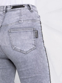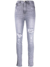 crystal-embellished jeggings Philipp Plein is known for his edgy designs as showcased on these grey stretch cotton high waist jeggings that are punctuated with a studded trim that captures the designer's punk spirit whilst the distressed details create a worn-in look. Highlights - Grey - Stretch cotton - Belt loops - Studded trim - Classic five pockets - Ripped detailing - Skinny cut Imported Composition Cotton 92%, Polyester 6%, Spandex/Elastane 2% SIZE & FIT Model measurements Height 5 ft 10 in(1.78 m) Bust/Chest 31.49 in(80 cm) Hips 37 in(94 cm) Waist 23.62 in(60 cm) FittingInformation This piece fits true to size. We recommend you get your regular size Cut for a slim fit Made with a mid-weight stretch fabric Washing instructions Machine Wash