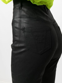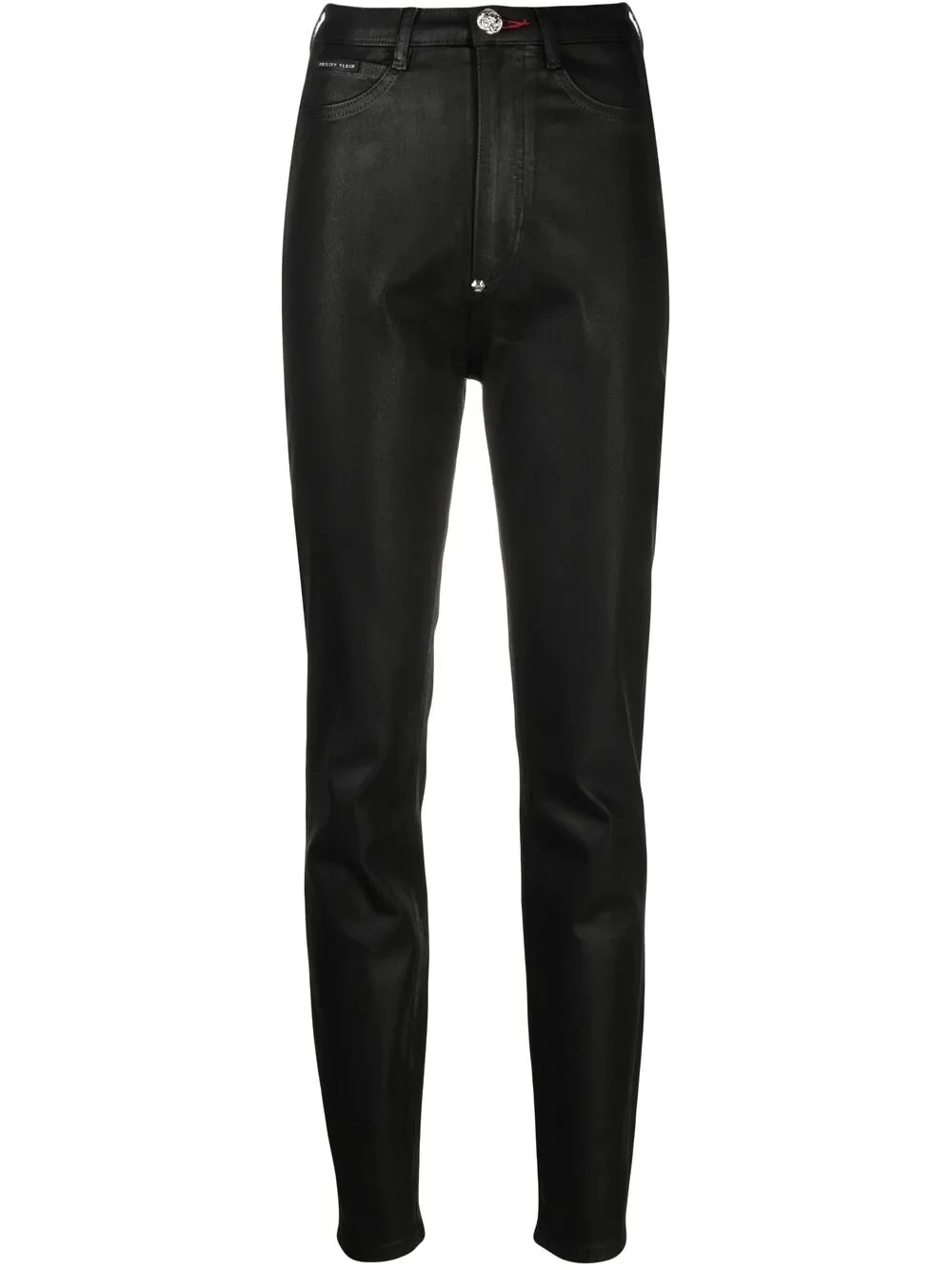 high-waist jeggings black stretch cotton skinny cut coated finish logo patch to the front belt loops front button and zip fastening classic five pockets Imported Composition Cotton 92%, Polyester 6%, Spandex/Elastane 2% SIZE & FIT Model measurements Height 5 ft 10 in(1.78 m) Bust/Chest 32.28 in(82 cm) Hips 35.82 in(91 cm) Waist 24.8 in(63 cm) Washing instructions Machine Wash