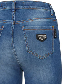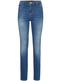 high-waist jeggings Highlights - Indigo blue - Concealed fly and button fastening - Classic five pockets - Belted waist tabs - Logo plaque Imported Composition Polyester 100%, Cotton 92%, Elastomultiester 6%, Elastane 2% Washing instructions Read Manufacturer Guidelines