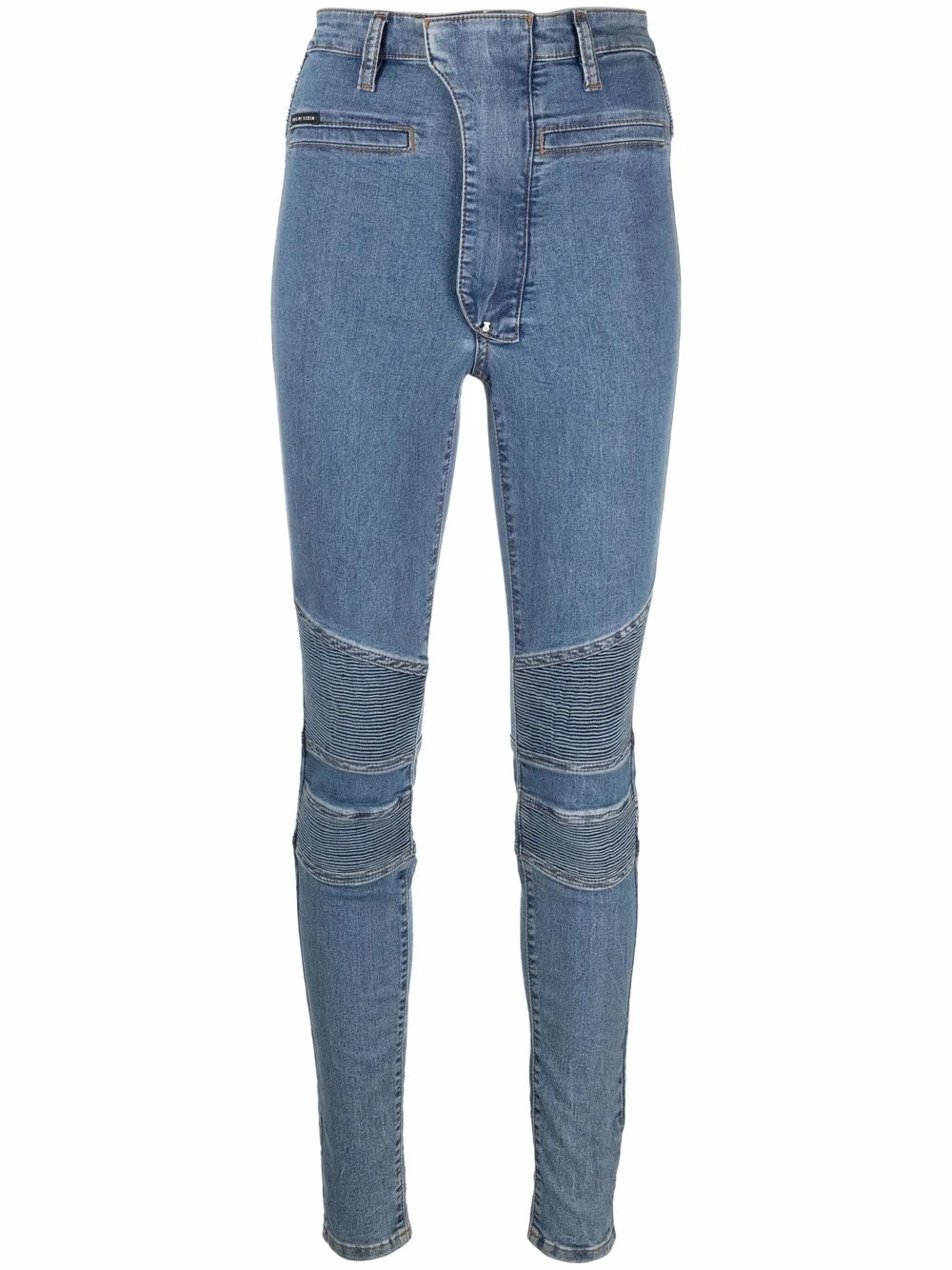 Iconic high waist biker jeans indigo blue cotton stretch ribbed-knee detailing skinny cut logo patch to the rear high waist belt loops two front welt pockets two rear patch pockets Imported Composition Cotton 92%, Polyester 6%, Spandex/Elastane 2% SIZE & FIT Model measurements Height 5 ft 10 in(1.78 m) Bust/Chest 33.46 in(85 cm) Hips 36.22 in(92 cm) Waist 23.22 in(59 cm) FittingInformation Designed for a skinny fit, these jeans offer a close fit throughout Constructed from stretch denim, this piece offers a stretch fit with durability This piece fits true to size – take your usual size Washing instructions Dry Clean Only