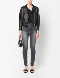 high-rise skinny jeans Highlights - Charcoal grey - Cotton blend - Stretch-design - Logo patch to the rear - Belt loops - Front button fastening - High-waisted - Super-skinny cut - Classic five pockets Made in Italy Composition Outer: Cotton 92%, Lycra 6%, Elastane 2% Lining: Polyester 65%, Cotton 35% SIZE & FIT Model measurements Height 5 ft 11 in(1.8 m) Bust/Chest 31.49 in(80 cm) Hips 36.41 in(92.5 cm) Waist 25.59 in(65 cm) FittingInformation Designed for a skinny fit, these jeans offer a close fit throughout Constructed from stretch denim, this piece offers a stretch fit with durability This piece fits true to size – take your usual size