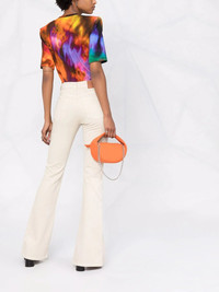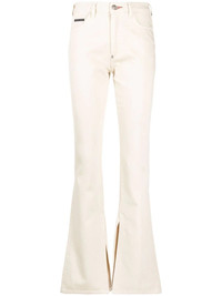 high-waisted flared jeans beige twist cotton high-waisted belt loops front button and zip fastening classic five pockets logo patch to the rear flared hem slit hem Imported Composition Lining: Cotton 100% Outer: Cotton 100% SIZE & FIT Model measurements Height 5 ft 11 in(1.8 m) Bust/Chest 31.49 in(80 cm) Hips 35.82 in(91 cm) Waist 24.8 in(63 cm) FittingInformation This piece fits true to size. We recommend you get your regular size Designed to be fitted at the waist and through the thigh, loose from the knee Made with a mid-weight non-stretch fabric Washing instructions Dry Clean Only