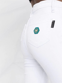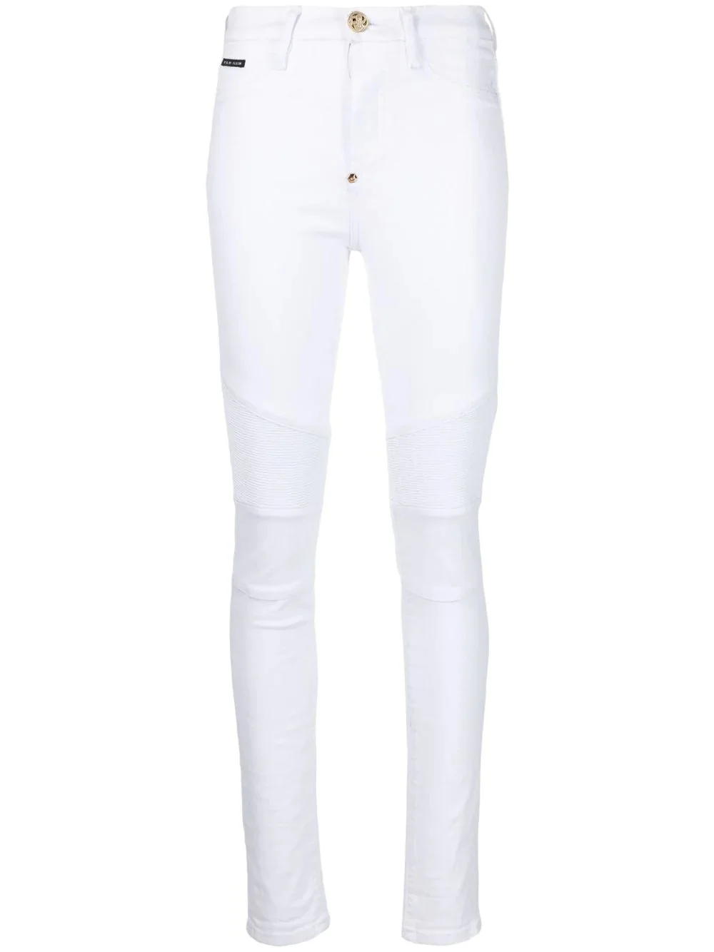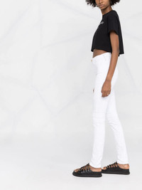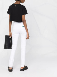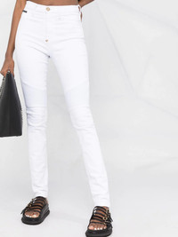 High-waisted Biker jeans white cotton high-waisted skinny cut logo patch to the front logo patch to the rear belt loops front button and zip fastening classic five pockets Imported Composition Outer: Cotton 92%, Polyester 6%, Spandex/Elastane 2% Lining: Polyester 65%, Cotton 35% SIZE & FIT Model measurements Height 5 ft 10 in(1.78 m) Bust/Chest 29.52 in(75 cm) Hips 35.03 in(89 cm) Waist 22.83 in(58 cm) FittingInformation This piece fits true to size. We recommend you get your regular size Cut for a slim fit Made with a mid-weight stretch fabric Washing instructions Dry Clean Only