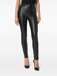 faux-leather leggings Highlights - Black - Faux leather - Applique logo - Logo tag - Silver-tone hardware - High-waisted - Belt loops - Concealed fly and button fastening - Classic five pockets - Super-skinny cut Imported Composition Polyurethane 52%, Polyester 48%