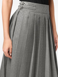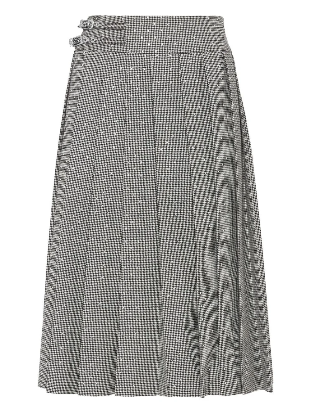 houndstooth pleated midi skirt Highlights - Black - Houndstooth pattern - Pleated design - Rhinestone embellishment - Belted waist tabs Made in Italy Composition Fabric 100% Washing instructions Read Manufacturer Guidelines