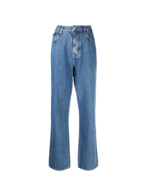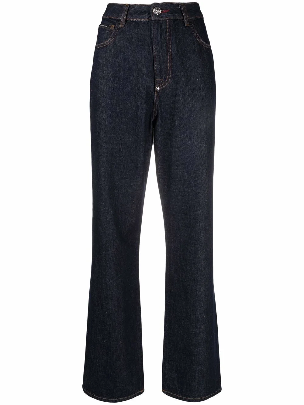 Iconic loose fit jeans indigo blue cotton wide leg logo patch to the rear high waist belt loops front button and zip fastening classic five pockets Imported Composition Lining: Polyester 65%, Cotton 35% Outer: Cotton 100% SIZE & FIT Model measurements Height 5 ft 10 in(1.78 m) Bust/Chest 33.07 in(84 cm) Hips 36.61 in(93 cm) Waist 24.8 in(63 cm) FittingInformation This piece fits true to size. We recommend you get your regular size Designed to be fitted at the waist and hips, loose over the leg Made with a mid-weight non-stretch fabric Washing instructions Do Not Wash/Do Not Dry Clean