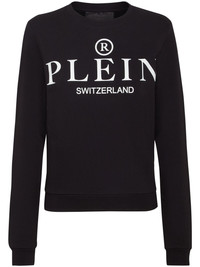 Iconic Plein round-neck long-sleeve sweatshirt Highlights - Black/white - Cotton - Jersey texture - Crew neck - Logo print to the front - Long sleeves - Straight hem - Ribbed cuffs and hem Imported Composition Cotton 100%