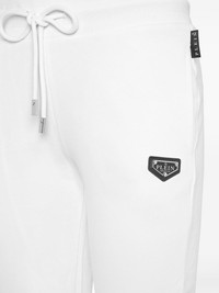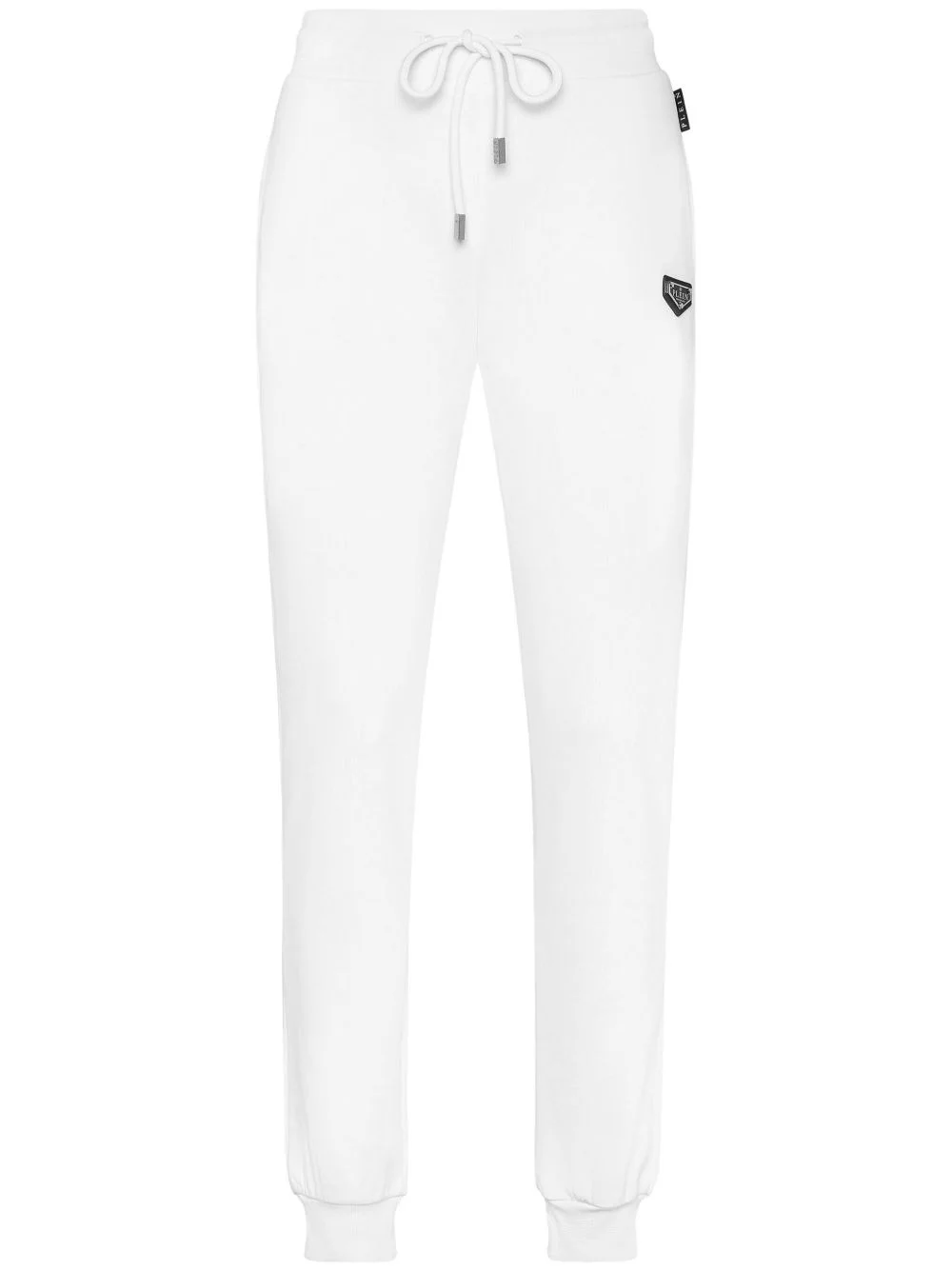Iconic Plein track pants Highlights - White - Cotton - Elasticated drawstring waistband - Mini logo tag - Applique logo - Two side inset pockets - Ribbed ankles Imported Composition Cotton 100%
