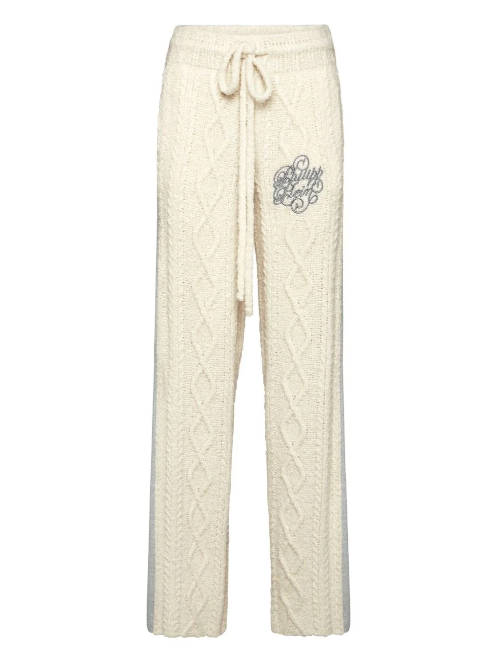 knitted straight-leg trousers Highlights - Off-white - Embroidered logo to the front - Elasticated drawstring waistband Made in Italy Composition Fabric 100% Washing instructions Read Manufacturer Guidelines