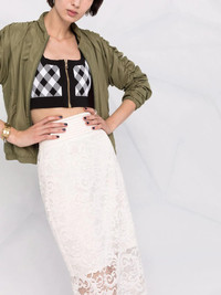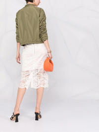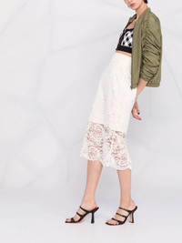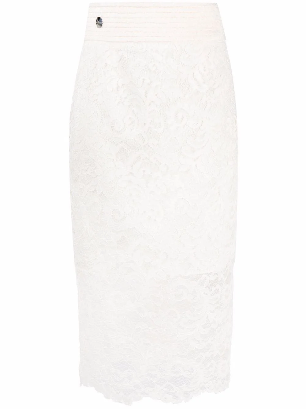 lace midi skirt Highlights - Cream - Pencil design - Pattern-lace detailing - High waist - Rear zip fastening - Compression lining - Scallop hem - Mid-length Made in Italy Composition Outer: Polyester 100% Lining: Polyester 100% Washing instructions Dry Clean Only
