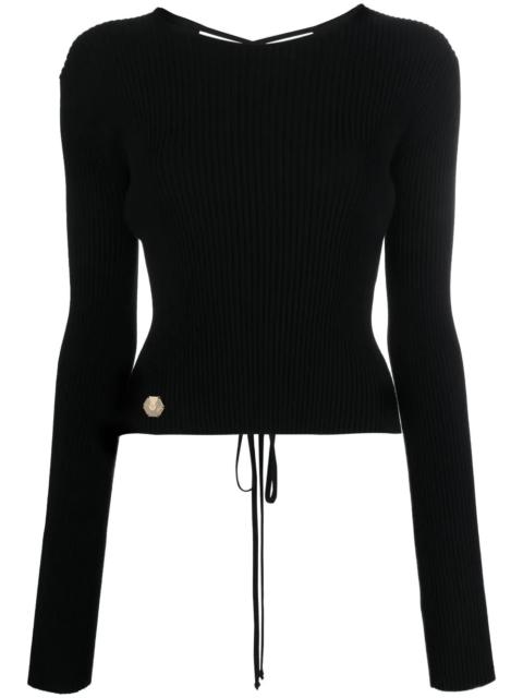 lace-up detail knitted top Philipp Plein's rebellious spirit is captured in the beige hue of this knitted top, complete with sultry lace-up detailing to the rear. Made in Italy Composition Viscose 70%, Polyester 30% SIZE & FIT Model measurements Height 5 ft 10 in(1.77 m) Bust/Chest 31.49 in(80 cm) Hips 33.85 in(86 cm) Waist 22.44 in(57 cm) FittingInformation This piece fits true to size. We recommend you get your regular size Cut for a slim fit Made with a mid-weight fabric Washing instructions Hand Wash