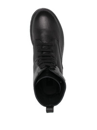 lace-up leather boots black leather logo plaque round toe pebbled texture front lace-up fastening ridged rubber sole Made in Italy Composition Leather 100% SIZE & FIT Measurement HEEL 1.37 in(3.5 cm) HEIGHT 6.29 in(16 cm) Sole height 0.59 in(1.5 cm)