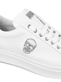 lace-up leather trainers Highlights - White - Calf leather - Front lace-up fastening - Skull patch detail - Logo plaque - Silver-tone hardware - Round toe - Flat rubber sole - Branded insole Made in Italy Composition Leather 100%
