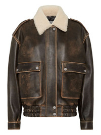leather aviator bomber jacket Highlights - Brown - Embossed logo to the rear - Concealed front zip fastening - Shearling collar - Long sleeves Imported Composition Sheep Skin/Shearling 100%, Calf Leather 100%