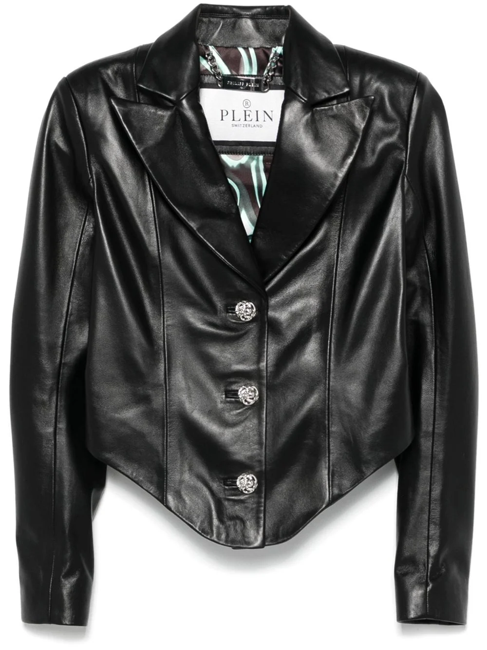 leather blazer Highlights - Black - Front button fastening - Shoulder pads - Applique logo - Logo-engraved buttons Imported Composition Leather 100%
