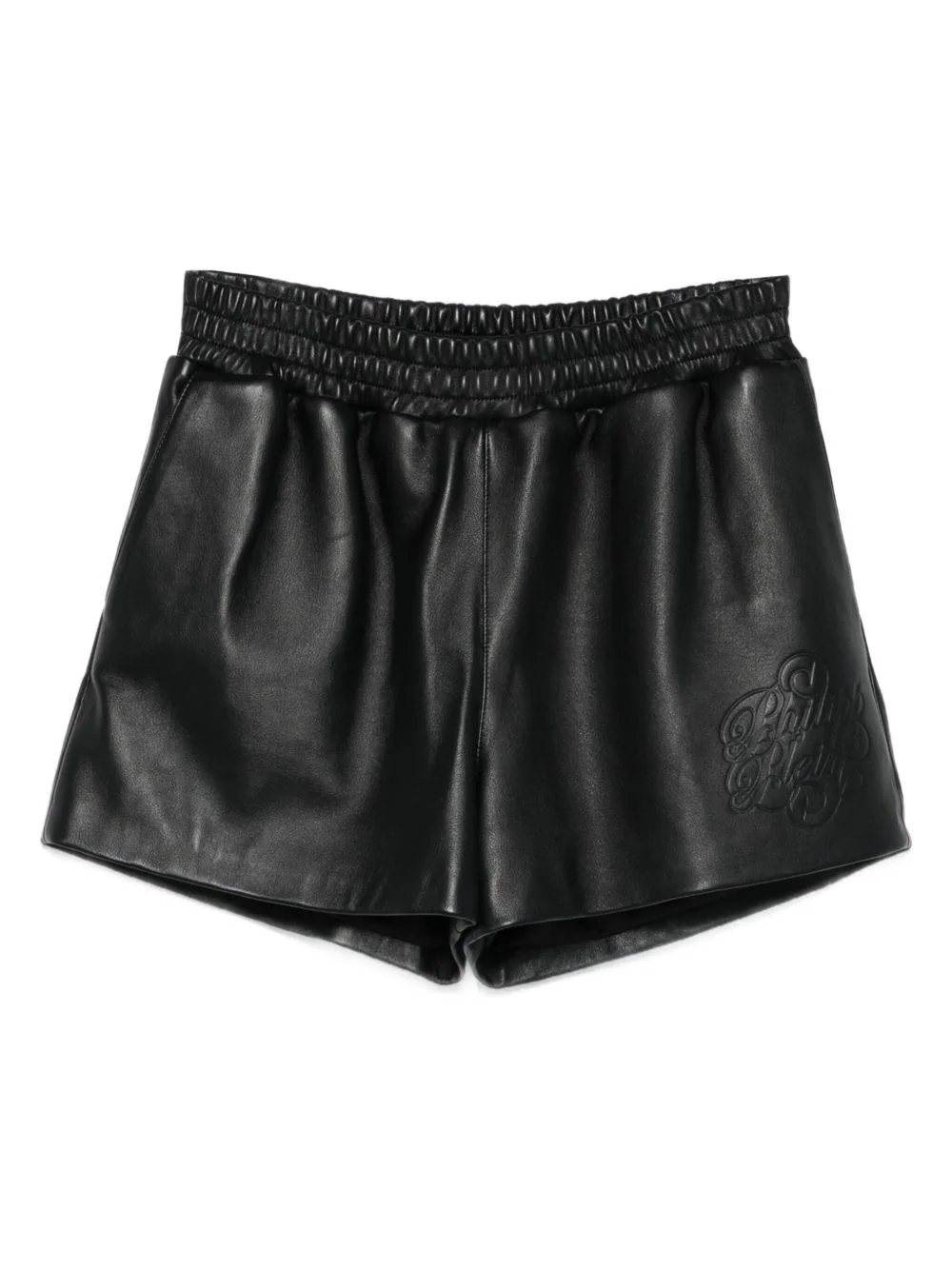 leather shorts Highlights - Black - Leather - Elasticated waistband - Embossed logo Imported Composition Outer: Lamb Skin 100% Lining: Polyester 100% Washing instructions Specialist Cleaning