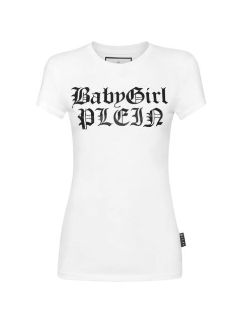 crystal-embellished cotton t-shirt Highlights - White - Cotton - Jersey texture - Logo print to the front - Crystal embellishment - Round neck - Short sleeves - Straight hem Imported Composition Glass Fiber 100%, Cotton 100%