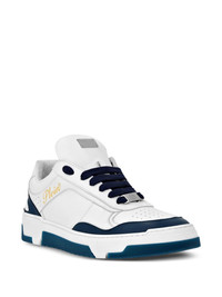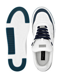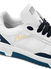 logo-debossed leather sneakers Highlights - White - Front lace-up fastening - Padded ankle - Perforated toebox - Flat rubber sole Made in Italy Composition Lining: Calf Leather 100% Sole: Rubber 100% Outer: Calf Leather 100%