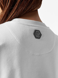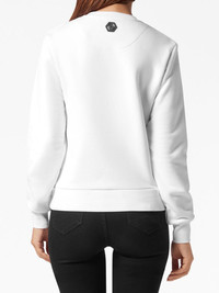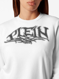 logo-embellished cotton sweatshirt Highlights - White - Cotton blend - Logo embellishment - Crystal embellishment - Round neck - Long sleeves - Straight hem Imported Composition glass 100%, Cotton 88%, Polyester 12% Washing instructions Read Manufacturer Guidelines