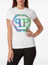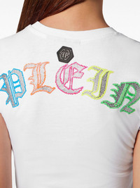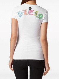 logo-embellished cotton T-shirt Highlights - White/multicolour - Cotton - Jersey - Rhinestone embellishment - Logo embellishment - Logo plaque - Mini logo tag - Crew neck - Short sleeves - Straight hem Imported Composition Cotton 100% Washing instructions Read Manufacturer Guidelines