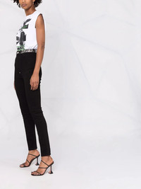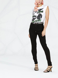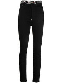 logo-embellished high-waist skinny jeans from PHILIPP PLEIN featuring black, stretch-cotton, crystal embellishment, logo waistband, high waist, belt loops, classic five pockets and front button and zip fastening. Highlights - Black - Stretch-cotton - Crystal embellishment - Logo waistband - High waist - Belt loops - Classic five pockets - Front button and zip fastening Imported Composition glass 100%,Cotton 92%,Polyester 6%,Spandex/Elastane 2%