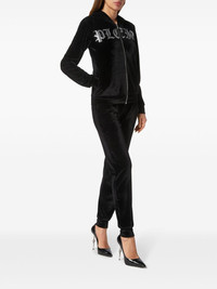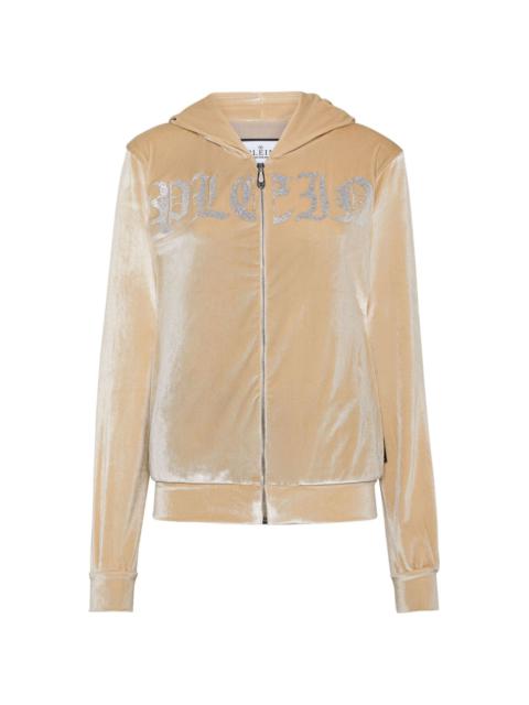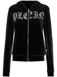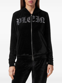 logo-embellished zip-up hoodie Highlights - Black - Velvet finish - Rhinestone embellishment - Classic hood - Front zip fastening - Long sleeves - Straight hem Imported Composition Polyester 100%