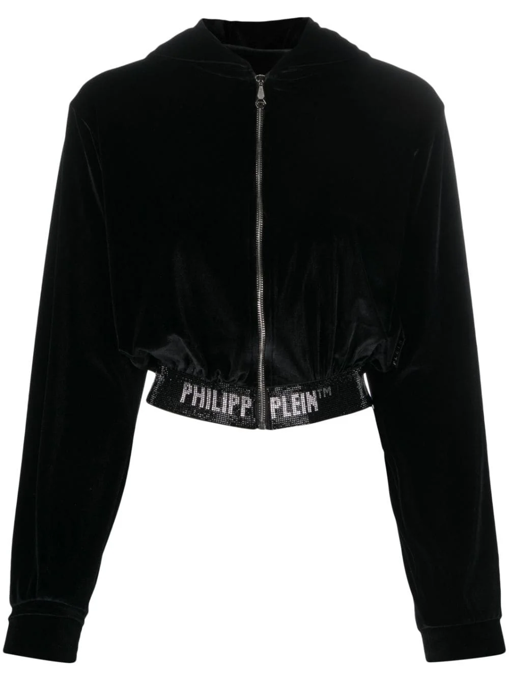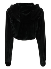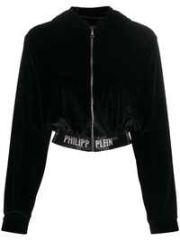 logo-embellishment velour hoodie Highlights - Black - Crystal embellishment - Logo waistband - Classic hood - Front zip fastening - Long sleeves Imported Composition Polyester 100% Washing instructions Hand Wash