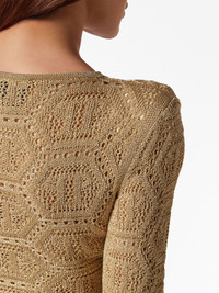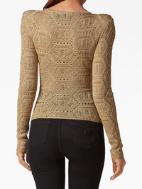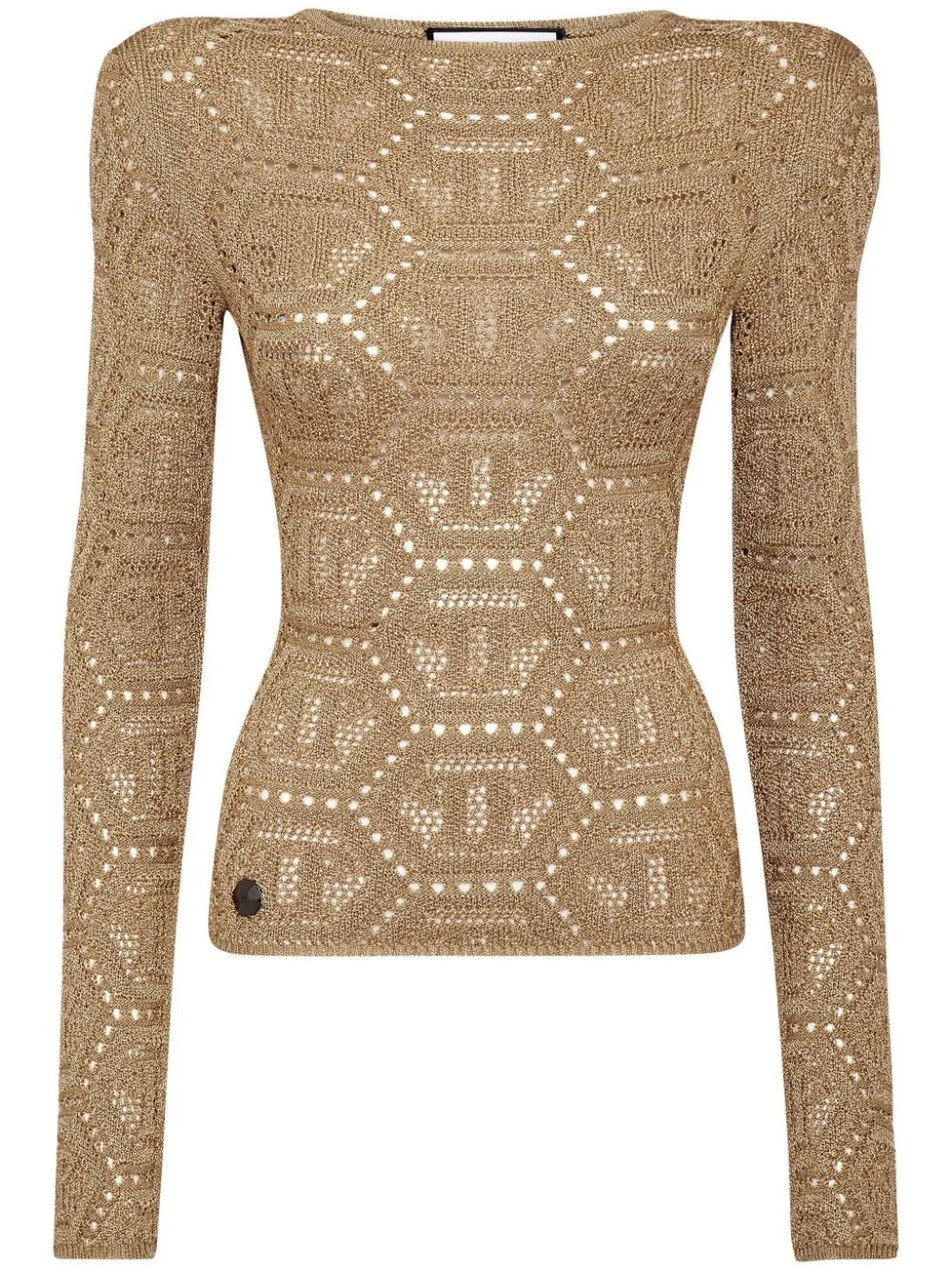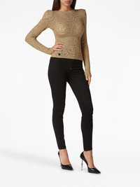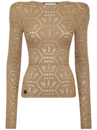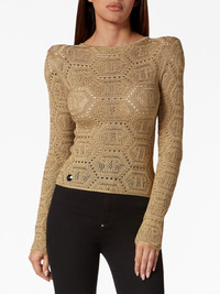 logo-embroidered knitted top Highlights - Gold-tone - Logo patch to the front - Embroidered design - Shoulder pads - Round neck - Long sleeves - Straight hem Made in Italy Composition Acetate 78%, Metallized Polyester 12%, Polyamide 10% Washing instructions Read Manufacturer Guidelines