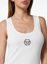 logo-embroidered ribbed tank top