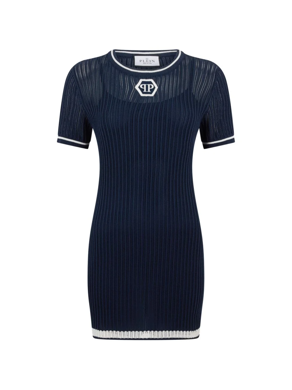logo-hexagon mini dress Highlights - Blue - Ribbed knit - Logo detail - Round neck - Short sleeves - Striped trim Made in Italy Composition Outer: Cotton 66%, Polyamide 34% Lining: Polyamide 100% Washing instructions Read Manufacturer Guidelines